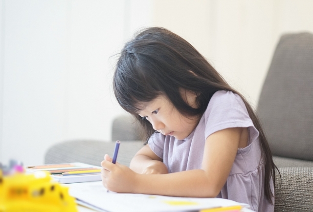 「絵本の文字」と「自分の文字」を並べて見比べさせて、